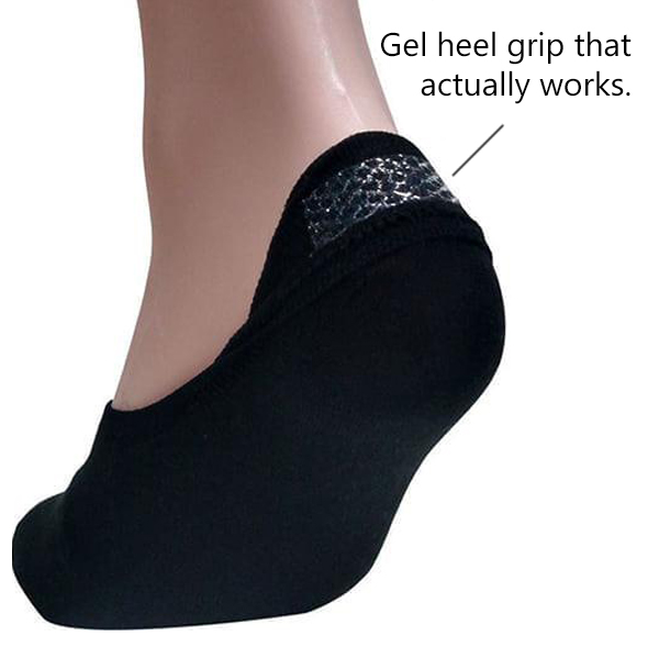 - Revolutionary gel heel grip "mesh" design. INVISASOX are guaranteed to stay on.